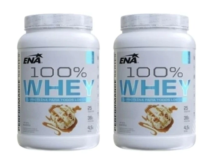 COMBO 2 100% WHEY ENA 2LB C/U es la opción ideal para quienes buscan maximizar su rendimiento en el gimnasio. Este combo incluye dos proteínas 100% Whey de 2lb cada una, lo que te asegura una abundante cantidad de proteína para tus necesidades diarias.